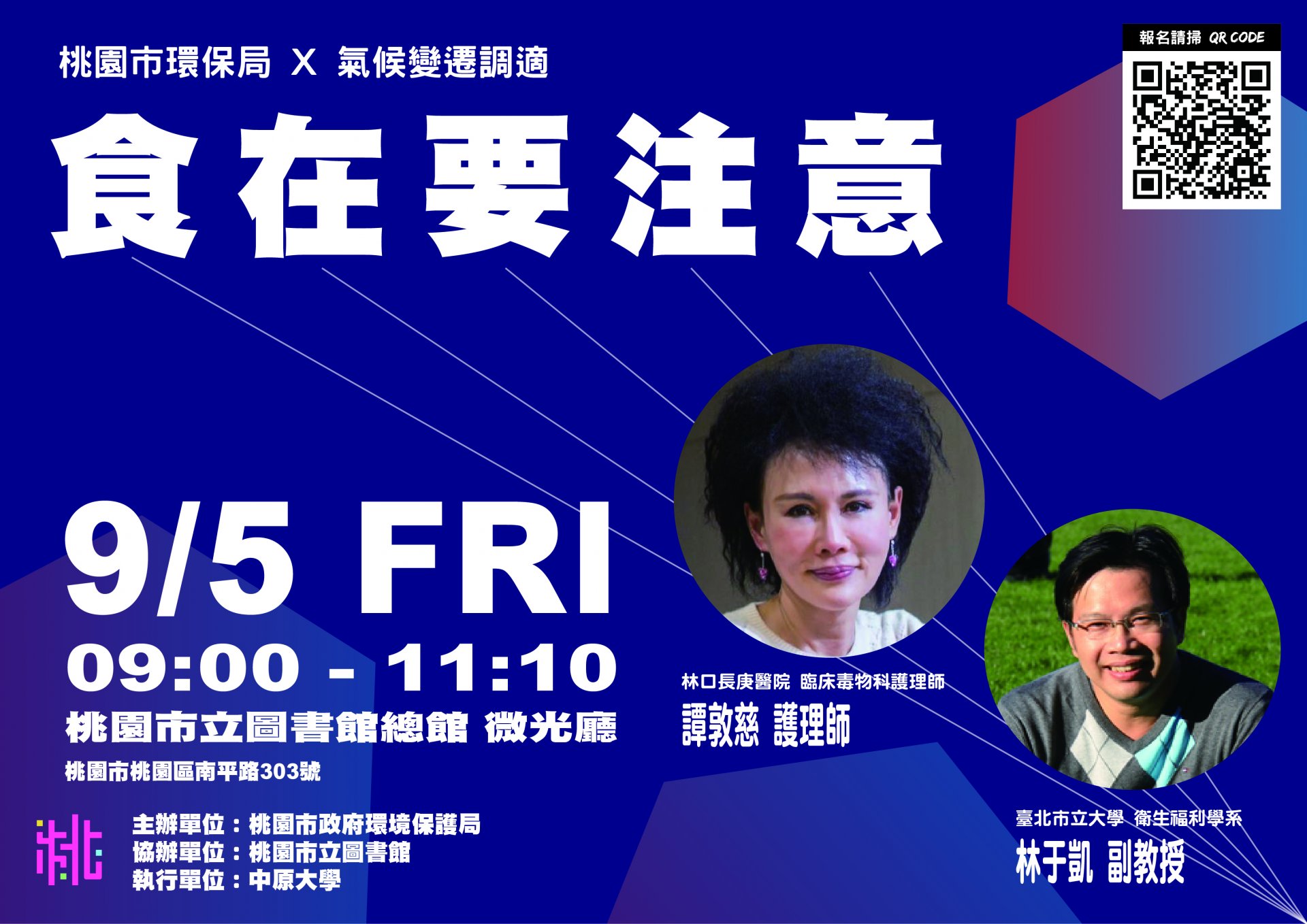 三、 | 本次工作坊特別邀請氣候變遷研究學者-臺北市立大學林于凱教授以及無毒教母-林口長庚臨床毒物中心的譚敦慈護理師擔任講座,分享氣候變遷調適新知以及極端氣候下的家庭健康飲食,成就永續健康人生。 |