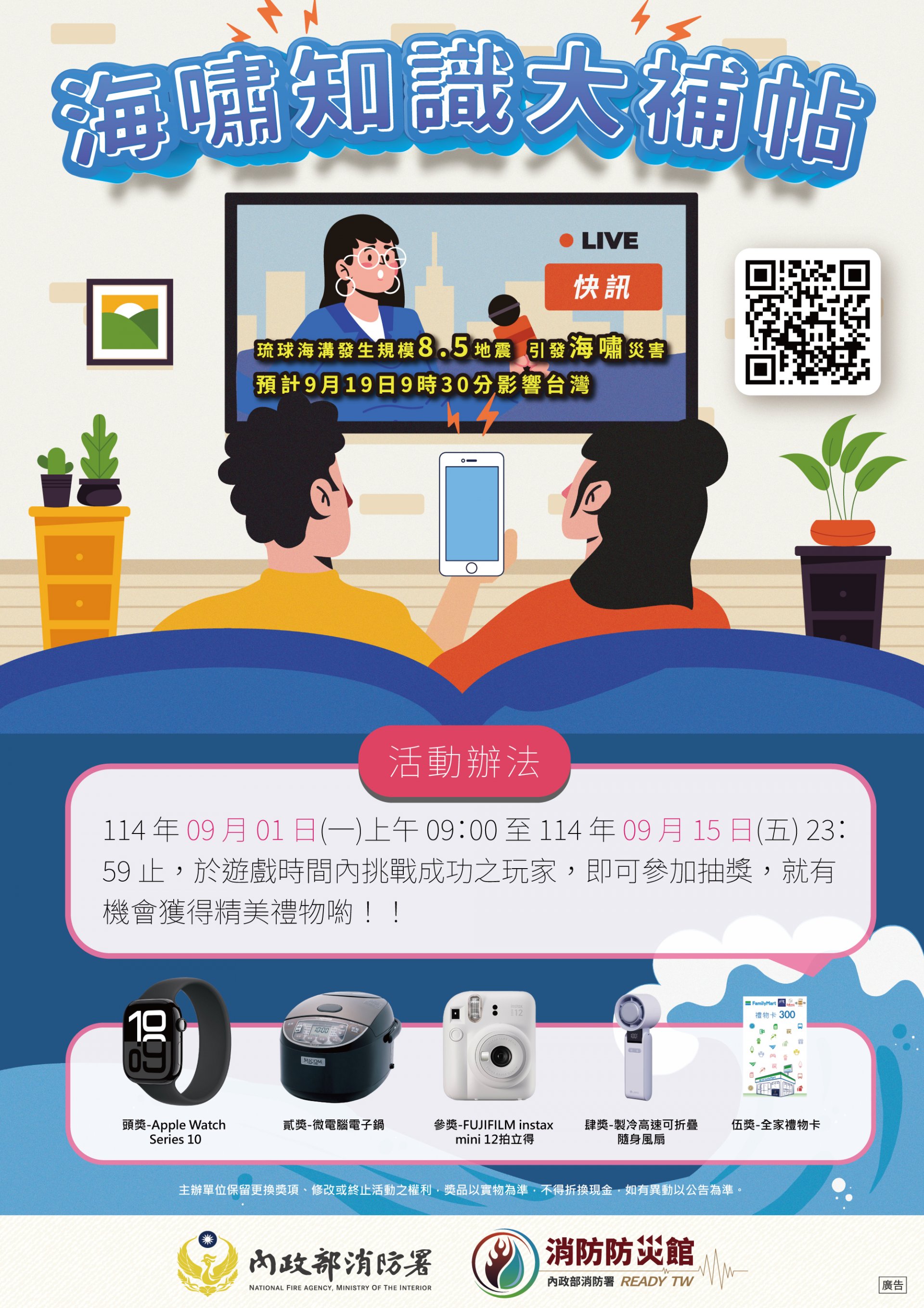 3、 | 防災遊戲-海嘯知識大補帖抽獎活動。 |