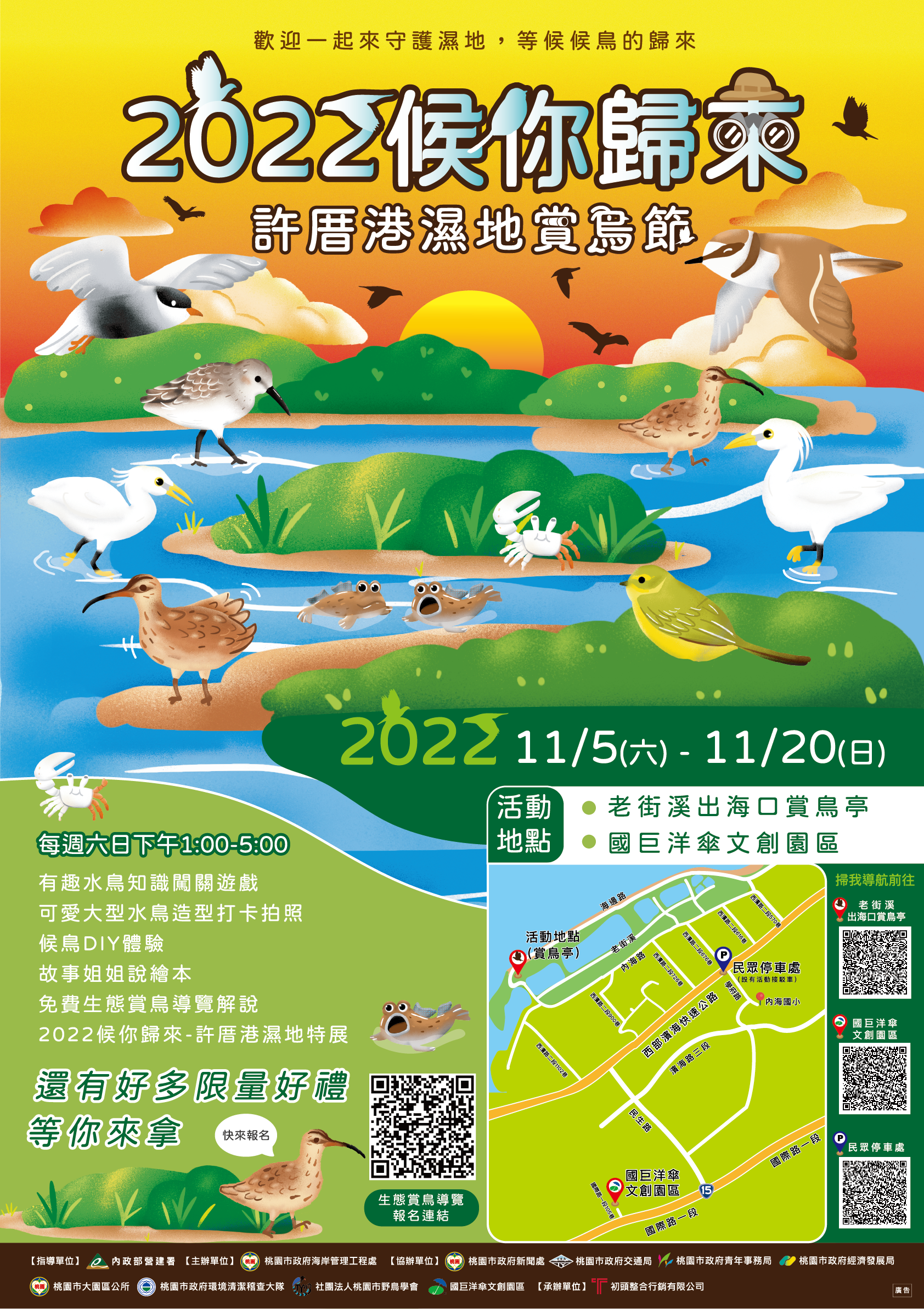 主旨: | 函轉本市海岸管理工程處辦理「2022候你歸來-許厝港濕地賞鳥節」,詳如說明,請查照。 |