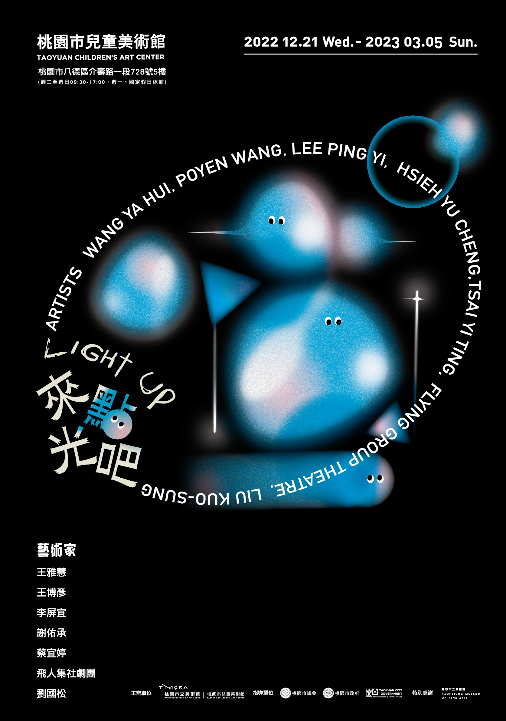 一、 | 桃園市兒童美術館策劃「來點光吧」年度特展,展出王雅慧、王博彥、李屏宜、謝佑承、蔡宜婷、飛人集社劇團、劉國松等七組藝術家/團隊的作品,透過錄像、繪畫、互動裝置、劇場等不同當代藝術創作,捕捉光的不同形象與姿態,引導孩童開啟一場以光為主題的思考與漫遊。 |