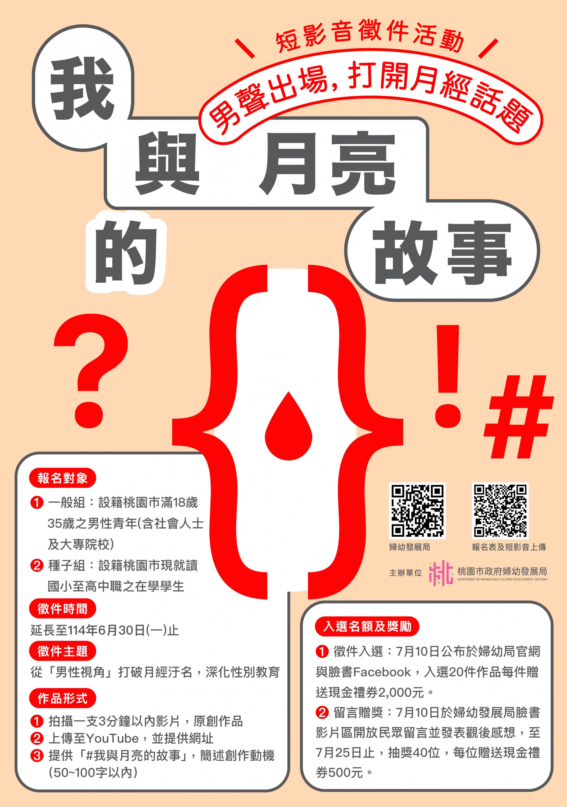 一、 | 為推動性別友善與經期平權,本局擬透過教育倡議與空間實踐雙軌並進,鼓勵桃園市男性青年及男性學生透過短影音創作,參與月經平權對話,促進社會對月經議題的理解與支持,擬辦理計畫如下: |