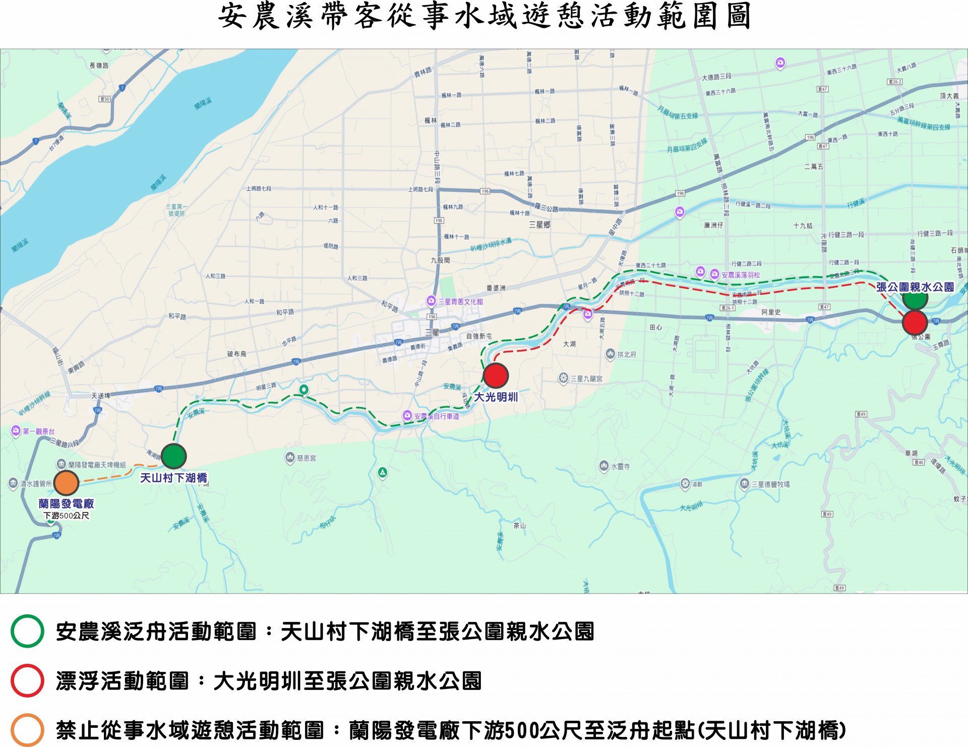 宜蘭縣政府修正「安農溪帶客從事水域遊憩活動範圍圖」