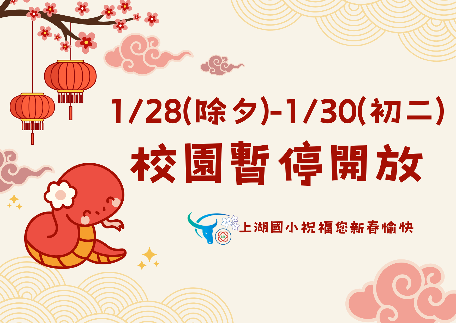 1/28(除夕)-1/30(初二)校園暫停開放公告