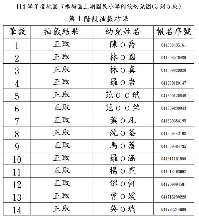 ▲ 經桃園市公立及非營利幼兒園招生網公布錄取幼兒,