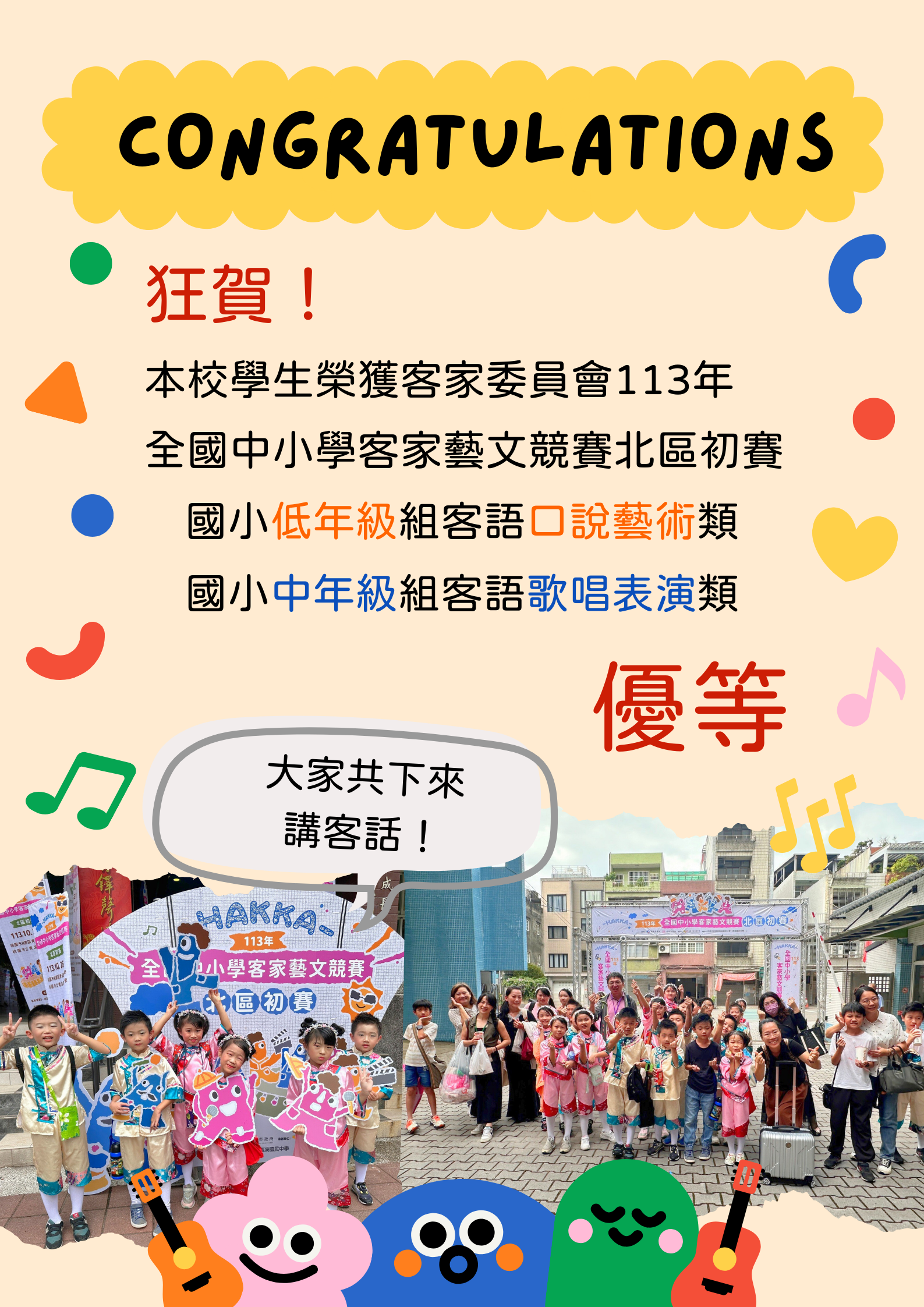 客家委員會113年全國中小學客家藝文競賽北區初賽 國小低年級組客語口說藝術類 優等